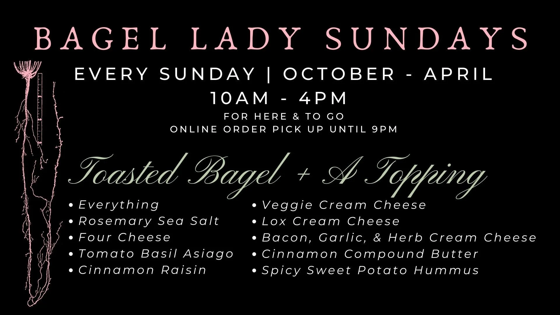 Join me every Sunday at Putnam’s vine/yard from 10 am - 4 pm. I’ll be in the front vestibule selling bagels for those that want to grab and go.